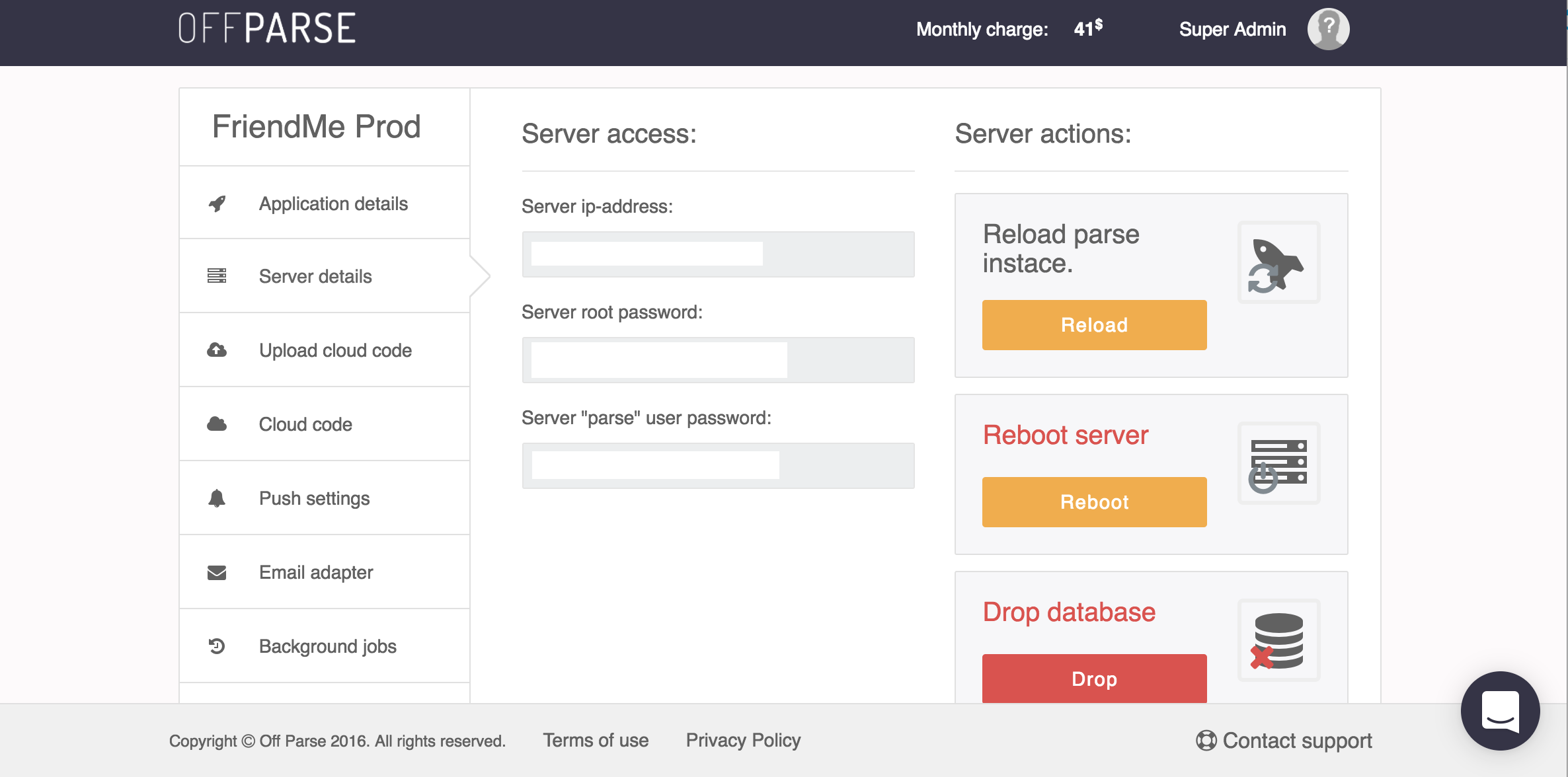 OffParse server has 2 users which you have access to. 'root' user and 'parse' user. Everything connected to Parse Platform can be accessed through 'parse' user
